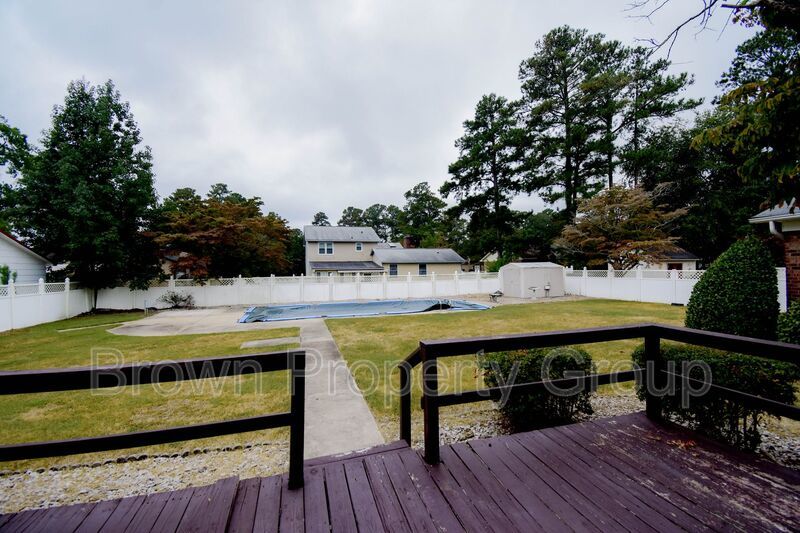 Welcome to this charming 3-bedroom, 2-bathroom home located in the vibrant city of Fayetteville, NC. This property offers a comfortable and modern living space. The home is conveniently situated in close proximity to Fort Bragg and many dining and shopping options. The kitchen provides ample cabinet space and an oven mounted in the wall providing easier accessibility. Down the hall is a formal dining room and an additional room perfect for an office or playroom! The backyard offers a deck and pool perfect for entertaining! The washer and dryer is left for tenant gift use. Pets are okay.